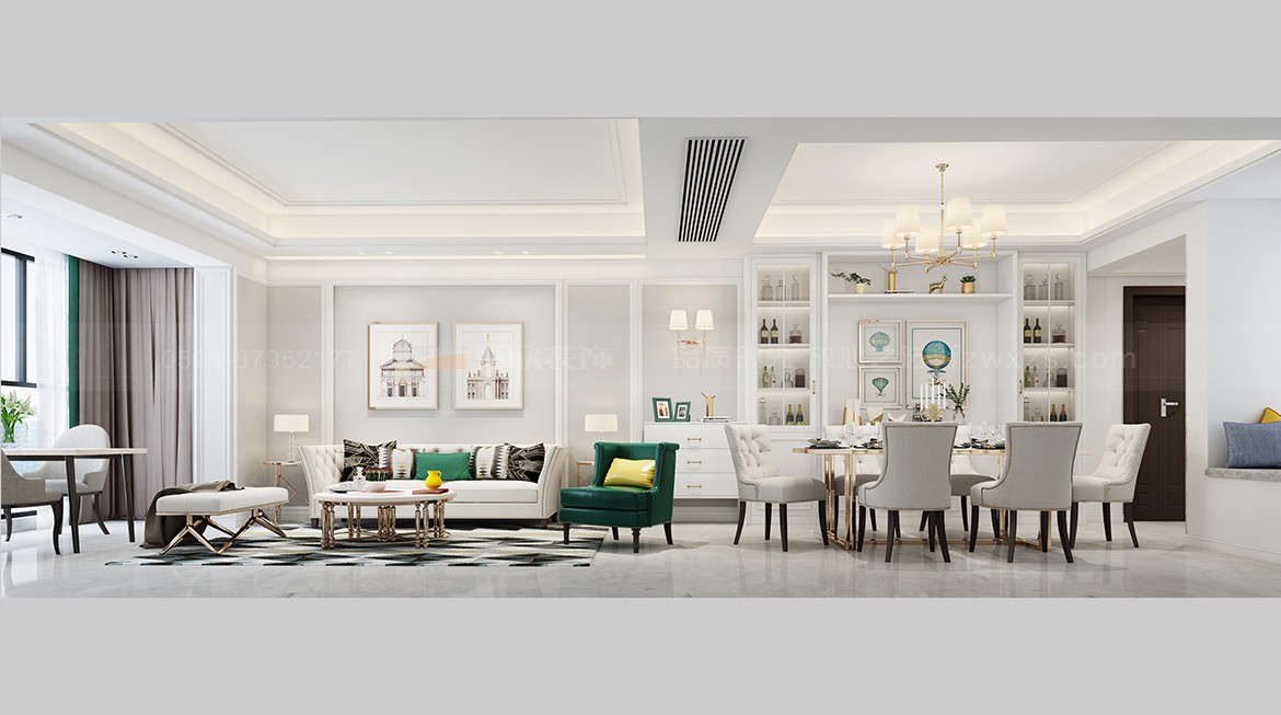 本方案墻面運用的裝飾品無處不顯現(xiàn)代簡歐輕奢的特色,增加空間感.舒適.設(shè)計師力求空間通透寬闊.純潔的質(zhì)地。精細(xì)的工藝瞬間俘獲人心。吊頂和地面的處理方式簡單大方,由于線條的不約束不經(jīng)意間增加了空間層次感。整體色調(diào)以暖白為主,炫目奪人,但又非常實用。