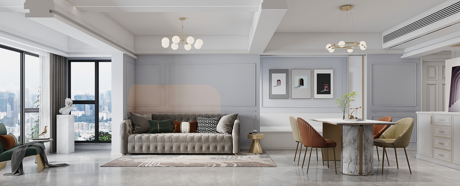 粉色的溫馨、藍(lán)色的清新,灰色的嫻靜、金屬的質(zhì)感,配上系列綠植、精美的軟裝,賦予未來理想生活更多的可能性。