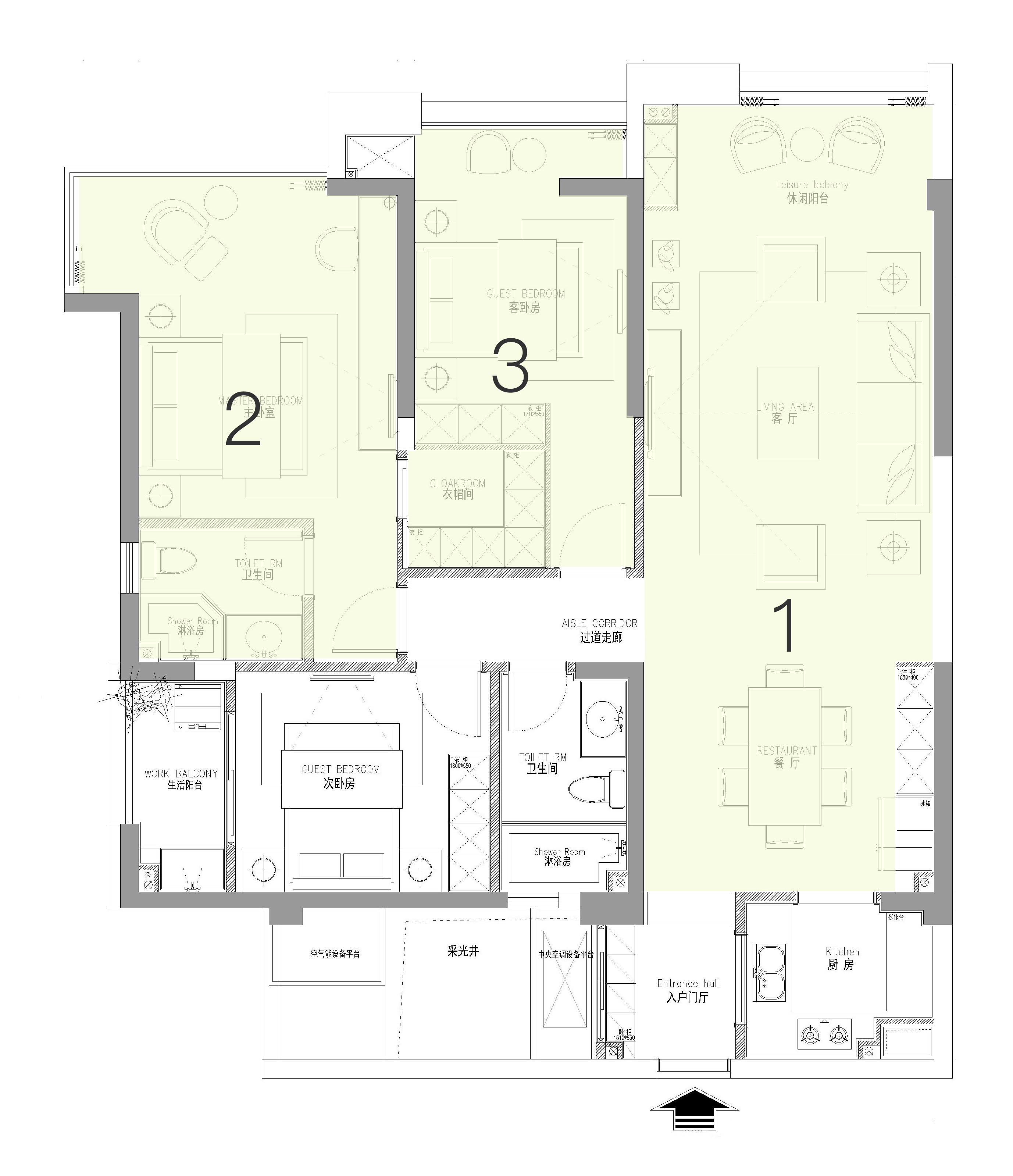 本案中以功能為導向,室內空間都采用簡潔的造型,在滿足基本需求的基礎上,解決空間、比例、光、材質的基本問題。這種簡潔也是一種品位,體現(xiàn)在設計細節(jié)上的把握,每一個細微局部的裝飾,都要深思熟慮。從而達到以少勝多,以簡勝繁的效果。多余的修飾和形態(tài)并不能帶來更多的舒適感,功能性和舒適性才是我們更應該關注的方向。