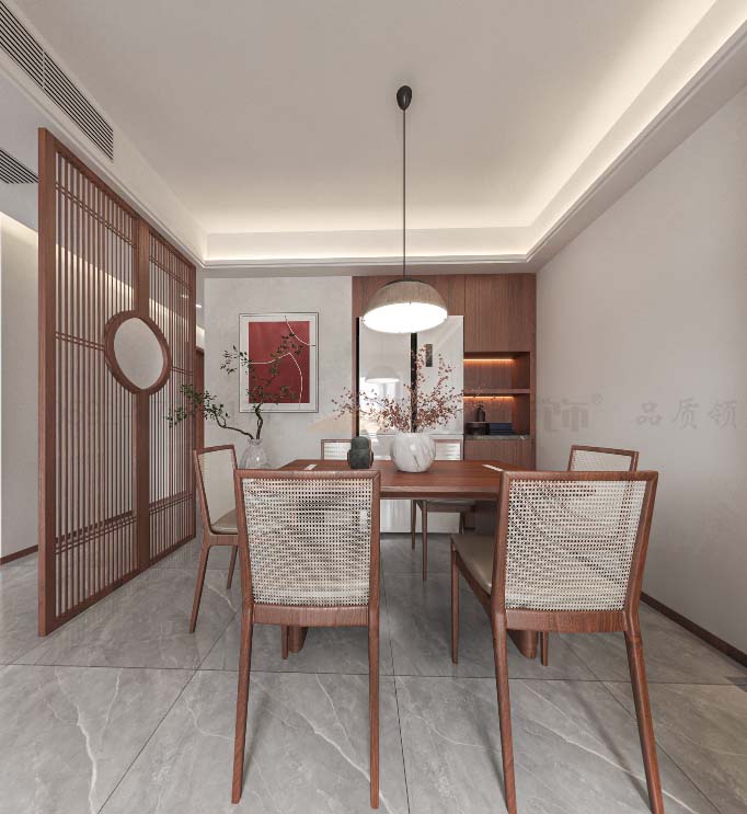 餐廳裝飾呈現(xiàn)出簡(jiǎn)約素雅的中式雅韻
