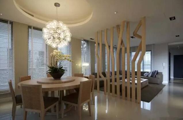 在原本縱向的客廳中增添一個隔斷,將其分為客廳和餐廳兩個空間,一舉兩得。需要注意隔斷的形式,挑選的材質(zhì)也一定要注意保持空間的通透性。